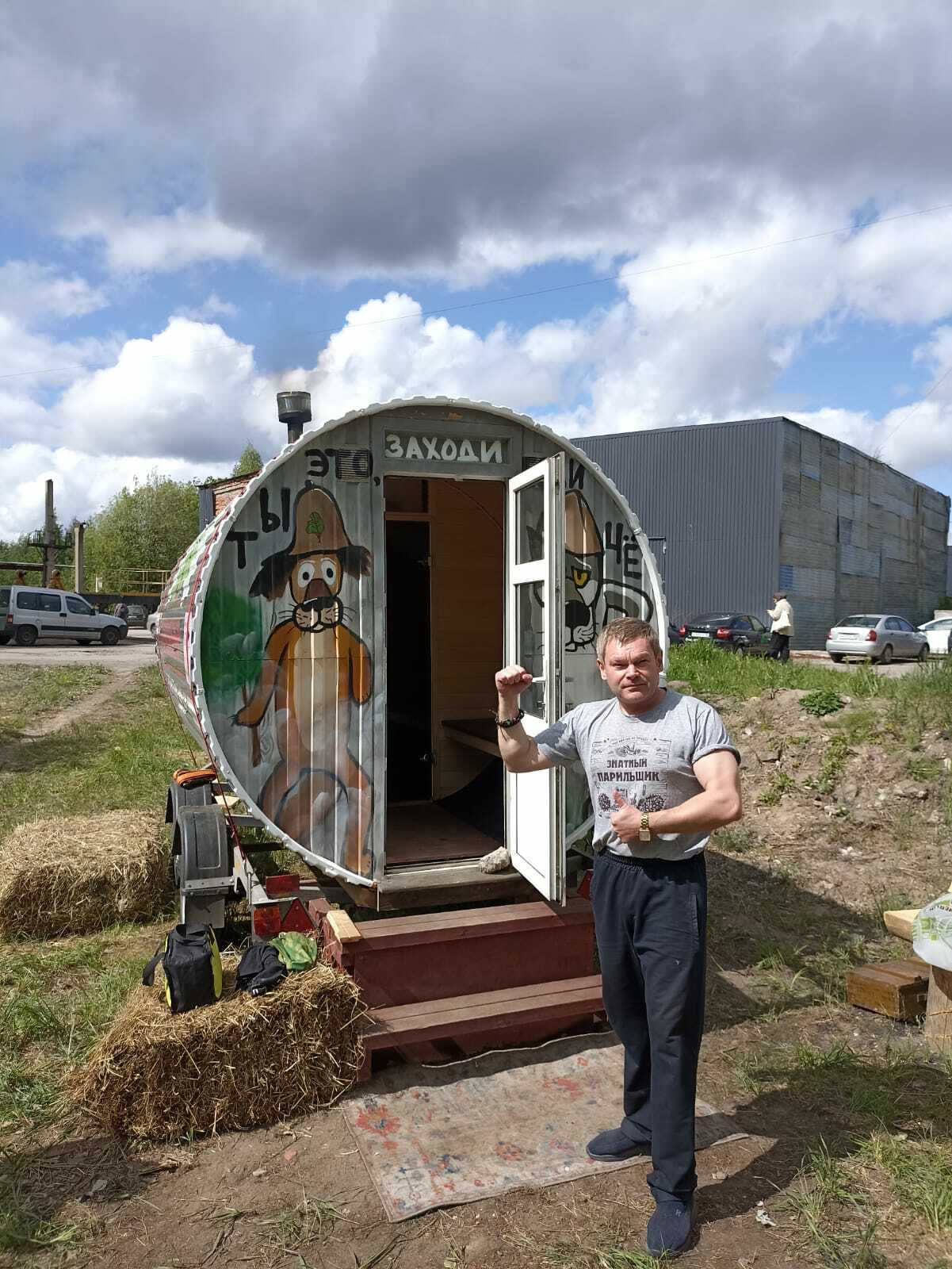 К Вашим услугам Баня-бочка на колесах с услугой профессионального парения - Выезд к вам на точку (дача либо то место куда укажите по Петербургу, Ленинградской области включая Москву и Подмосковье) и вся РФ